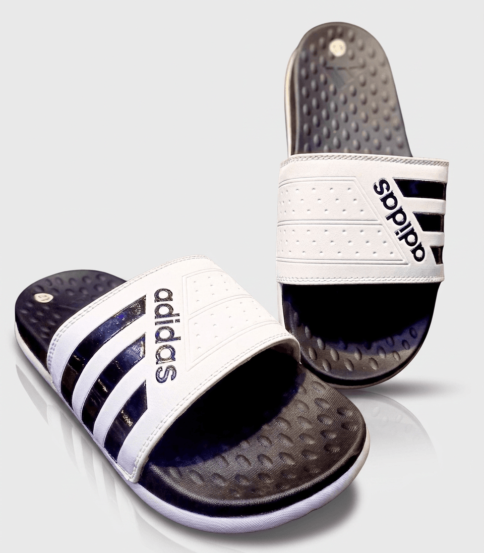 Step into effortless comfort with the AD CloudWalk White Slides – where sporty style meets everyday functionality. Featuring a bold white strap with iconic stripe detail and a textured navy footbed, these slides are built for both comfort and durability.